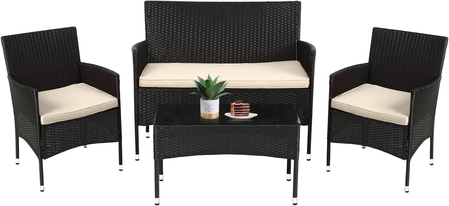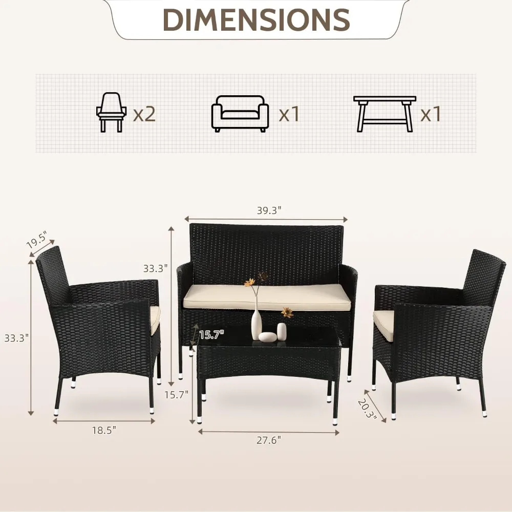 - ✔〖STRONG AND STURDY〗:This patio furniture set is made with a powder-coated steel frame and all-weather PE rattan wicker for a comfortable experience.The wicker of the Outdoor furniture set is sturdy but also very light. The seat cushion of this patio Conversation Set can be removed for easy cleaning. Outdoor Furniture Set Patio Wicker Furniture Set Patio Sofa Garden Conversation Set.